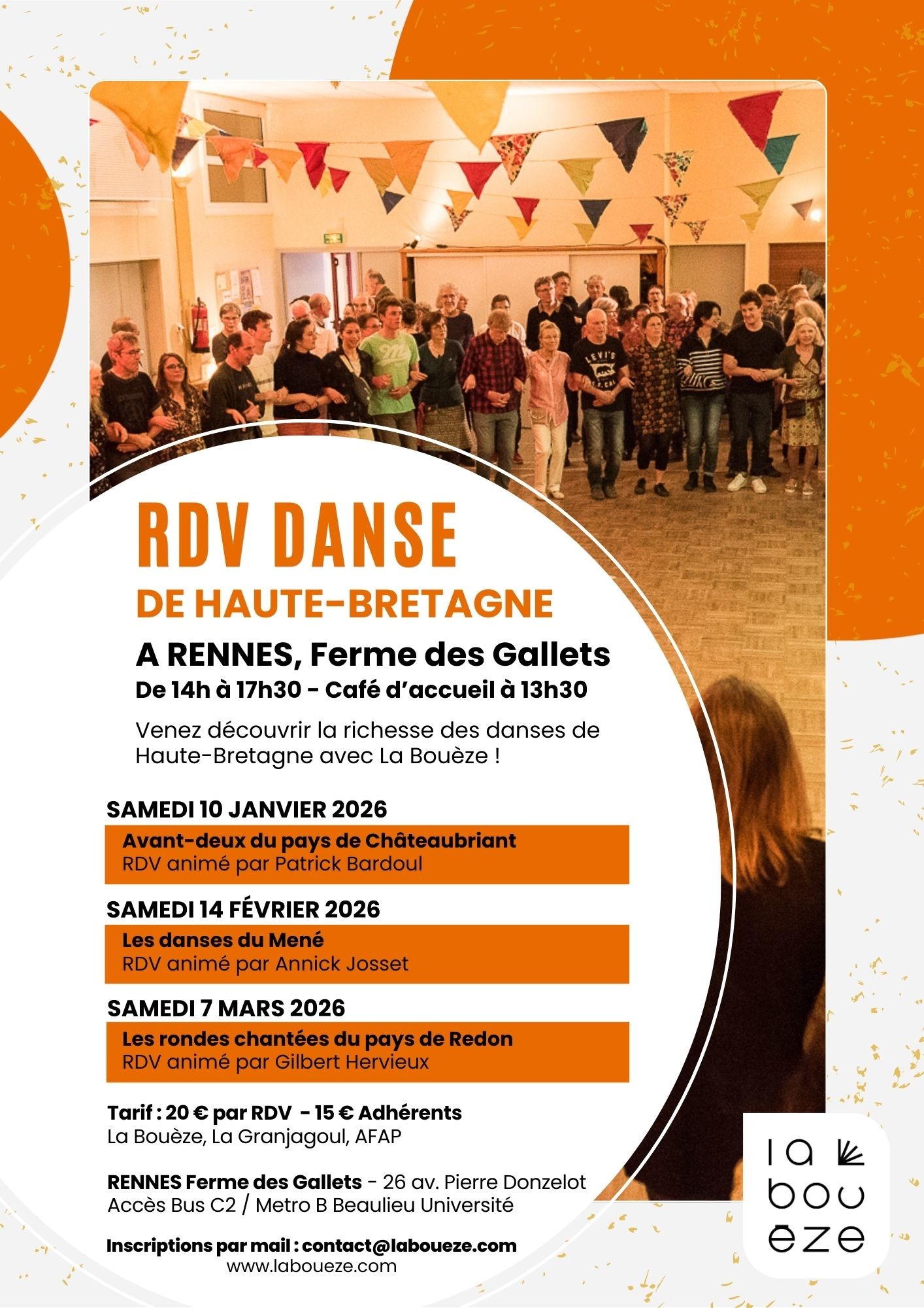 Inscriptions auprès de La Bouèze par mail : contact@laboueze.com